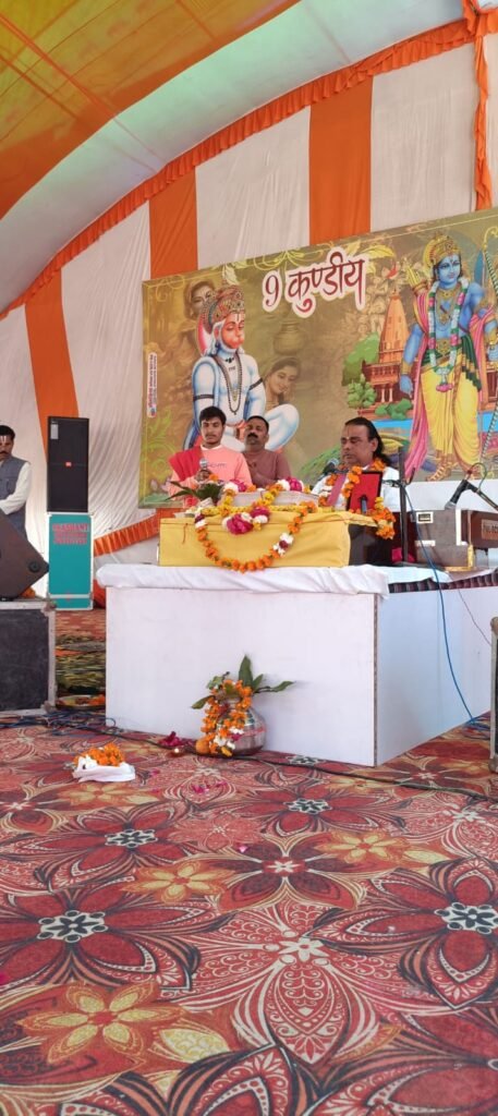 मऊरानीपुर……श्री शांति निकेतन धनुषधारी आश्रम में महंत श्री रामदास ब्रह्मचारी जी (बुंदेलखंड पीठाधीश्वर) के सानिध्य में चल रहे श्री विष्णु महायज्ञ एवं श्री शत चंडी महायज्ञ के द्वितीय दिवस में ब्रह्म मुहूर्त में वेद पाठ प्रारंभ हुआ l प्रातः काल श्री हनुमान जी का लांगगूल प्रयोग करके हनुमान जी को सवामन वेसन के लड्डुओं का भोग लगाया गया एवं वैदिक विद्वानों द्वारा पंडितों का कार्य विभाजन करके यजमानों को कुण्ड वितरित किए गए l सभी देवताओं का आवाहन करके मंडप प्रवेश किया गया, कल अरणी मंथन करके अग्नि देव का प्राक्रट करके अग्नि स्थापन के साथ हवन प्रारंभ होगा l