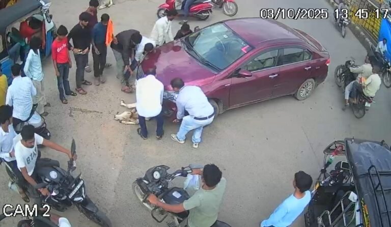 झाँसी में सड़क हादसे में गाय का बछड़ा कार के नीचे आया, राहगीरों ने बचाई जान,घटना सीसीटीवी कैमरे में हुई कैद।