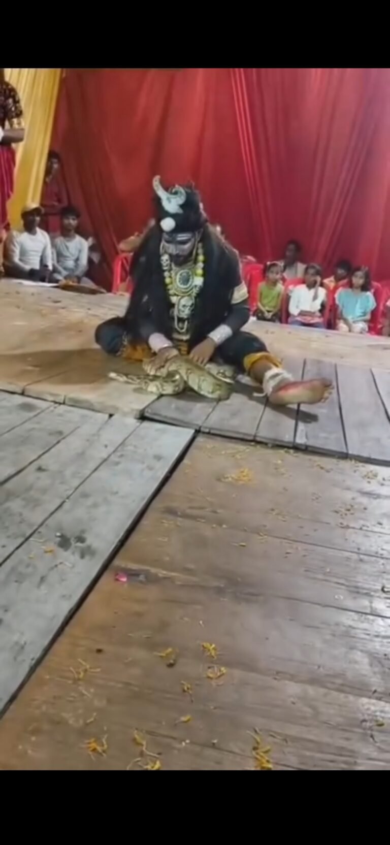 दुर्गा पूजा पंडाल में अजगर के साथ करतब, वीडियो वायरल